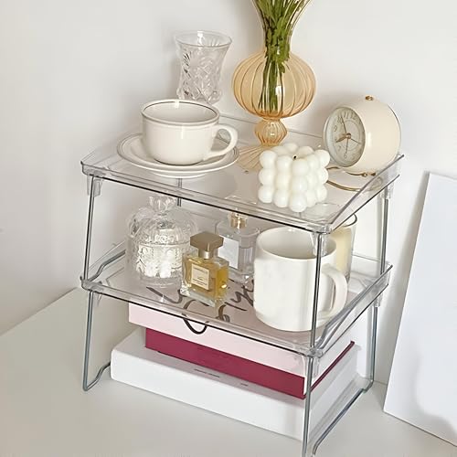Generic - رف أدوات المائدة المصنوع من الأكريليك - منظم مبتكر قابل للتكديس بأرجل معدنية، مثالي للحفاظ على أدوات المطبخ والأطباق مرتبة بشكل أنيق على أسطح العمل وفي الخزائن