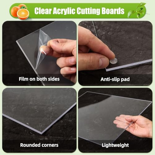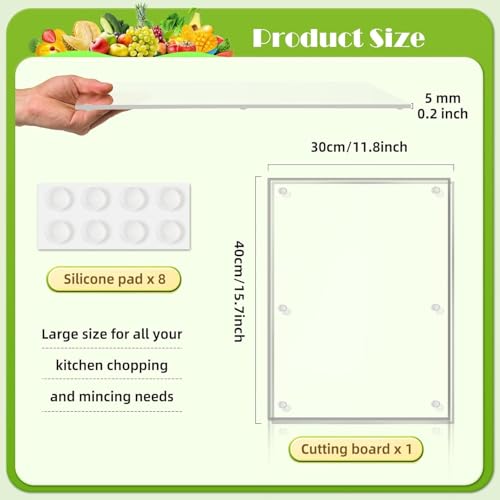 Generic - ميكس تاش لوح تقطيع اكريليك 40 سم × 30 سم، لوح تقطيع شفاف مضاد للانزلاق 5 ملم، لوح تقطيع اكريليك شفاف مع ارجل مطاطية لطاولة المطبخ وحماية المنزل وسطح الطاولة