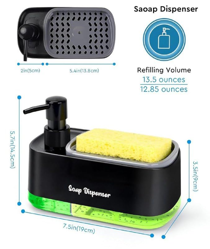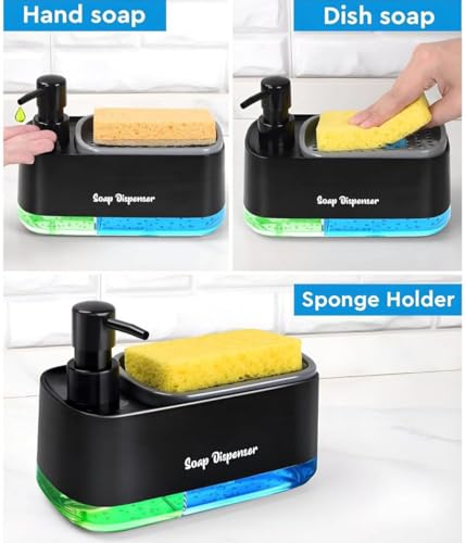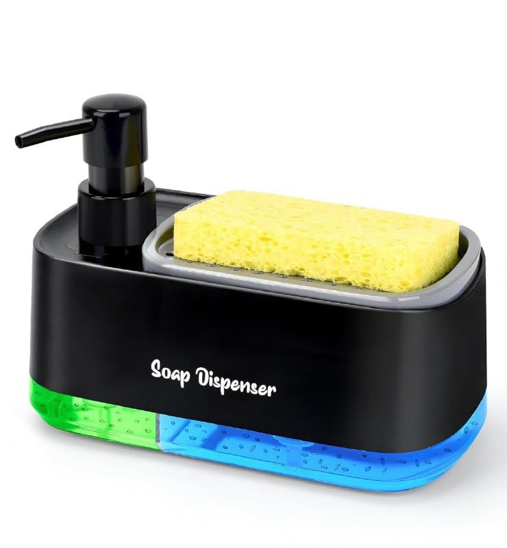 Generic - ديسبنسر صابون متقسم أكريليك مع ليفة – موزع صابون عملي بمقسمين