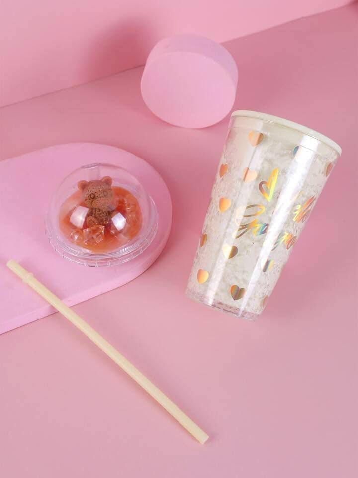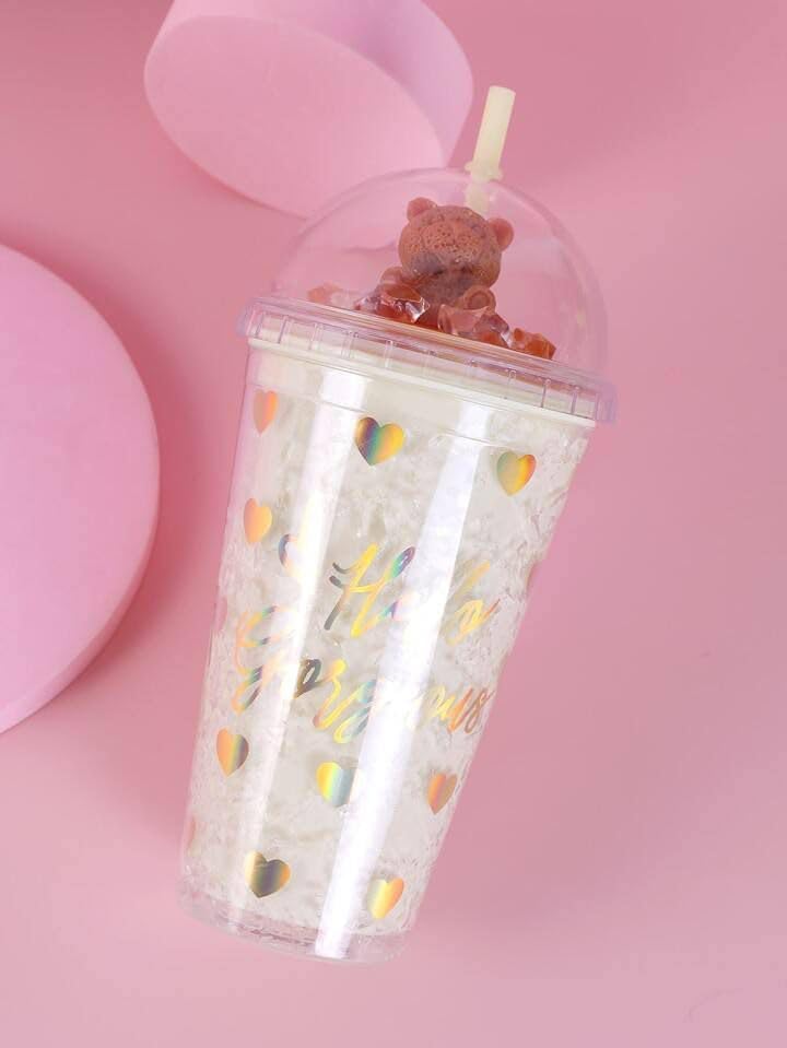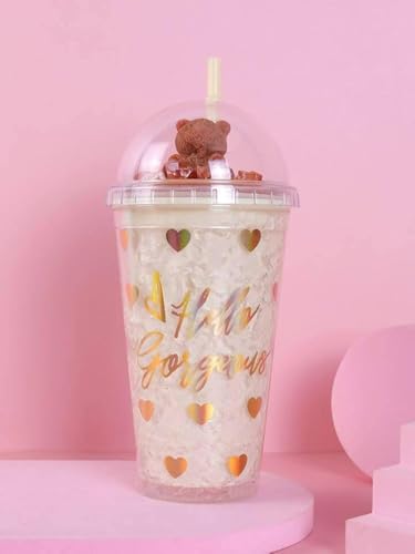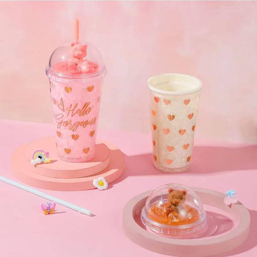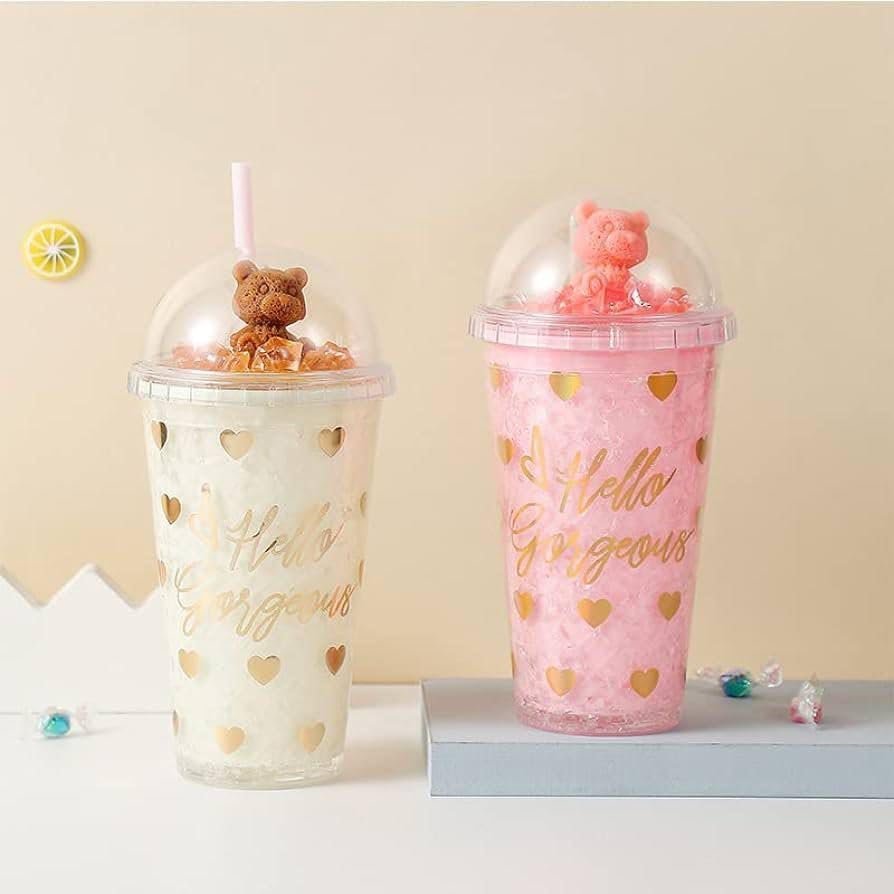 Generic - مج اكريليك بشفاطة مزدوج بتصميم لطيف و دبدوب صغير مصنوع من السيليكون 450 مل - متعدد الالوان