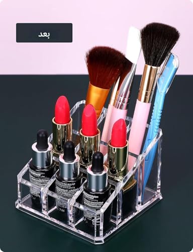 Generic - منظم طاولة الزينة أكريليك - صينية أنيقة بـ 9 فتحات لترتيب أحمر الشفاه وطلاء الأظافر والفرش بدقة؛ حل أنيق وموفر للمساحة (2pcs)