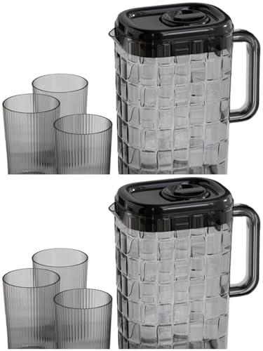 Generic - ابريق مشروبات اكريليك مع 3 اكواب، مجموعة مشروبات انيقة ومتينة للعصير والماء والشراب، ادوات مائدة خفيفة الوزن لرمضان وتناول الطعام المنزلي والحفلات والدخان وخيارات شفافة (عبوتان)