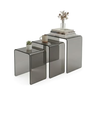 CLEAR WING - طقم طاولات أكريليك فاميه متداخلة 3 قطع - طاولات جانبية مودرن للقهوة والخدمة - تصميم موفر للمساحة لغرفة المعيشة والمكتب
