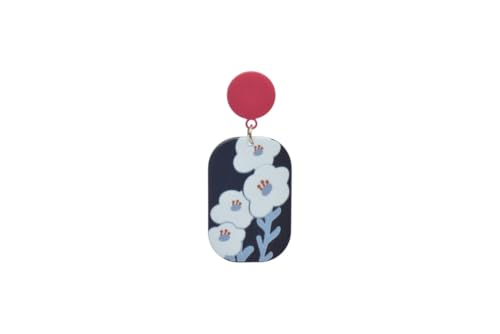 Generic - اقراط متدلية من الاكريليك بتصميم زهور للنساء - ازرق كحلي واحمر