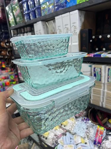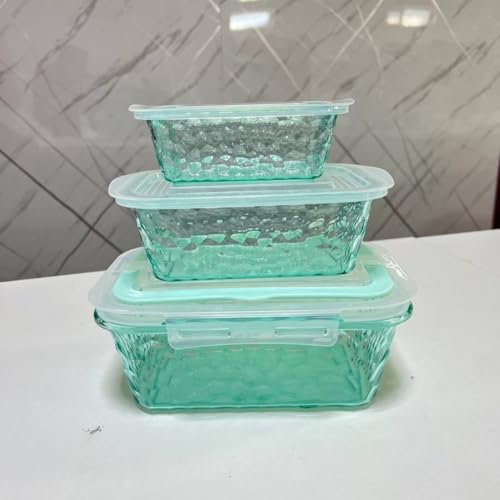 Generic - مجموعة علب تخزين طعام من الاكريليك، 3 قطع، محكمة الاغلاق، امنة للاستخدام في الميكروويف وغسالة الصحون، قابلة للتكديس، شكل شفاف، 900/1700/2300 مل (اخضر)