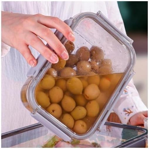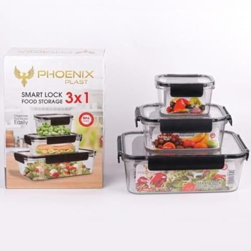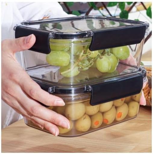 Generic - طقم علبة حفظ طعام للثلاجة من الاكريليك 3 قطع مع قفل محكم الغلق وجوانب