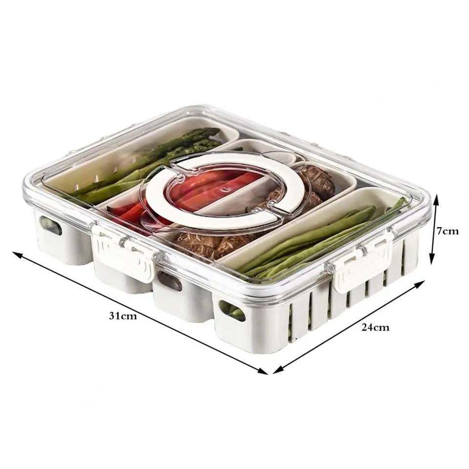 - حافظة ومنظم أكريليك مع غطاء مقسمة إلى 4 أقسام، تناسب تخزين الخضروات مثل البروكلي، الخس والفلفل الأخضر.