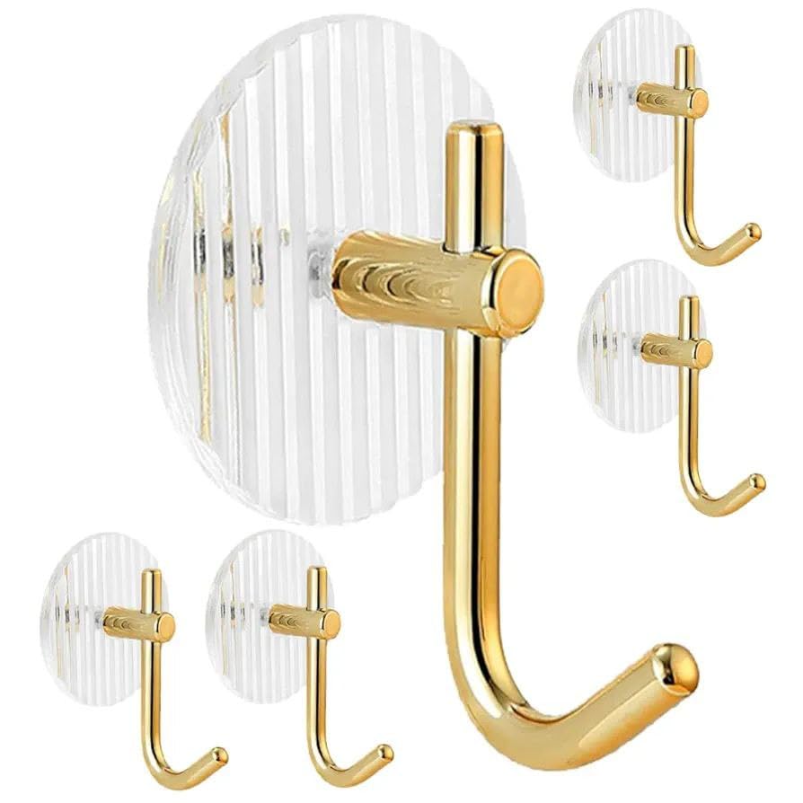 Generic - طقم شماعات أكريلك شفاف بلمسة هوك ذهبي أنيق، 4 قطع عملية تجمع بين المتانة والفخامة، مزودة بدبل فيس قوي لضمان ثبات على الحائط أو الباب مع شكل شيك يناسب أي ديكور. (عبوة من قطعتين)