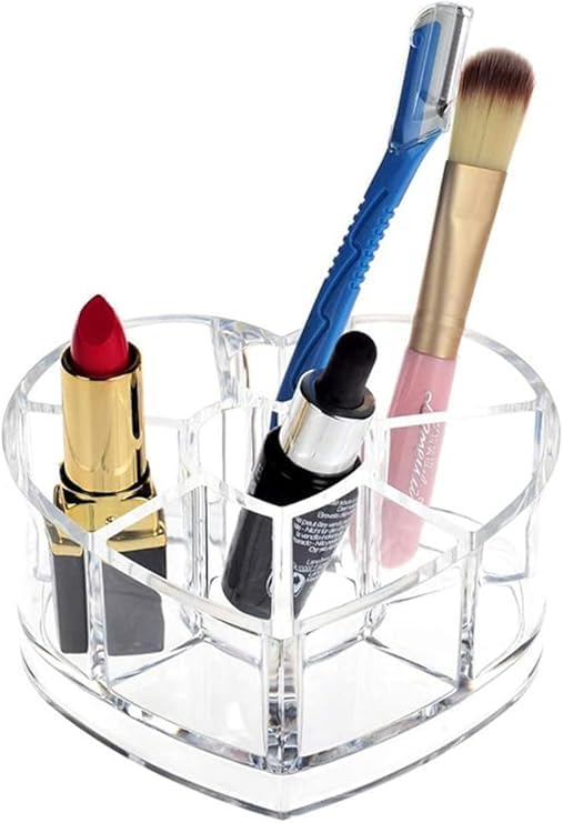 Generic - منظم مستحضرات التجميل على شكل قلب من الاكريليك، حامل احمر الشفاه، حامل عرض، علبة تخزين طلاء الاظافر واقلام الحواجب
