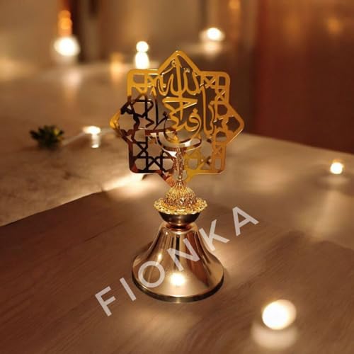 - تصميم أنيق: تتميز مبخرة الاكريليك من فيونكا بخط إسلامي معقد على لوحة مزخرفة على شكل نجمة مع لمسة نهائية ذهبية اللون، مما يخلق قطعة مركزية مذهلة لديكور منزلك