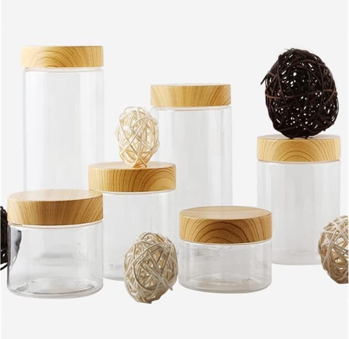 Generic - برطمان اكريليك بغطاء معزول مظهر خشبي بتصميم أنيق مع غطاء