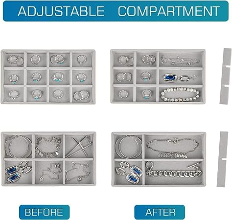 - 💍【تصميم ممتاز للتخزين】: يتميز كل درج بتصميم بمساحة مختلفة لوضع مجوهراتك بكافة أحجامها؛ كل جزء قابل للفصل والتعديل، ويمكن تعديل الترتيب حسب الرغبة. يمكن تخزين المجوهرات ومستحضرات التجميل بشكل منفصل، مما يوفر مساحة أكبر، كما توجد أربعة قواعد ثابتة مانعة للانزلاق في الأسفل لمنع الخدوش في الجزء السفلي من صندوق تخزين المجوهرات.