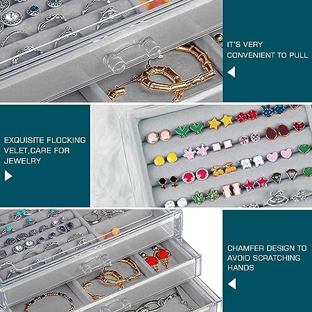- 💍【اكريليك شفاف عالي الجودة】: صندوق تخزين المجوهرات الشفاف مصنوع من مادة أكريليك عالية الجودة، ومقاومة للغبار ومتينة، مما يتيح لك معرفة مكان المجوهرات بسهولة والتقاطها بطريقة مُريحة. وفري وقتك.