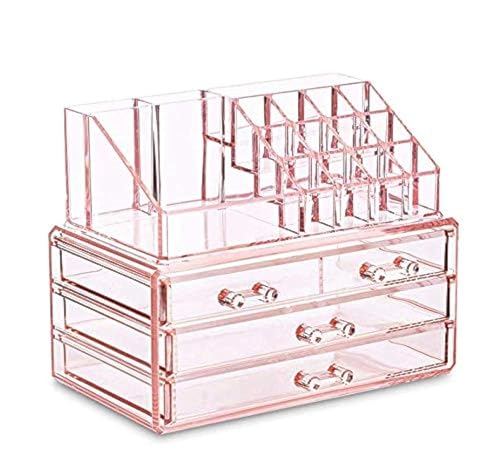 generic - مجموعة صناديق عرض وتخزين المجوهرات ومستحضرات التجميل من الاكريليك مع حامل فرش مع 4 ادراج - مع ضمان الرضا والجودة لمدة عام واحد