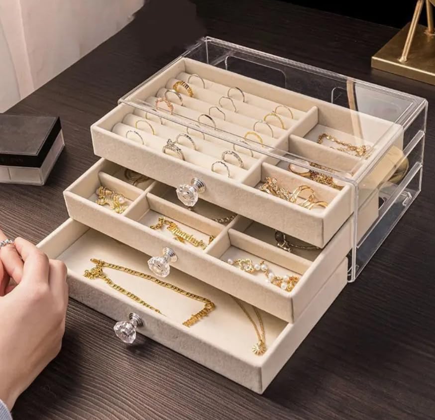 Generic - صندوق منظم مجوهرات أكريليك مع 3 أدراج