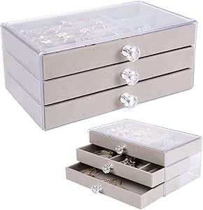 Generic - صندوق منظم مجوهرات حريمي اكريليك بـ 3 أدراج، صناديق مجوهرات شفافة لحلقان والخواتم والأساور والقلادات، علبة قطيفة لتخزين المجوهرات