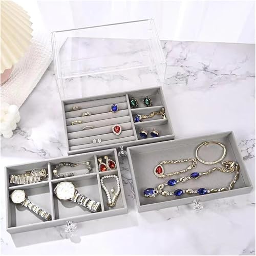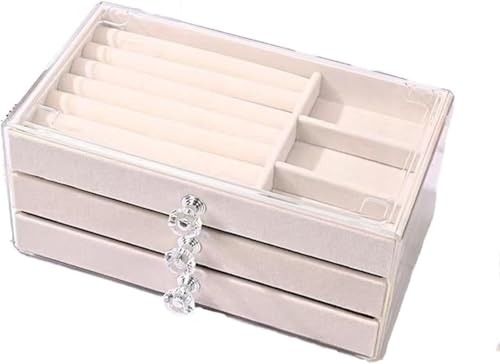 Generic - صندوق تخزين مجوهرات اكريليك مع مساحات تخزين مخملية - منظم من 3 طبقات مع مقابض كريستالية، عرض أنيق للحلقان والخواتم والأساور والاكسسوارات - هدية لديكور المنزل