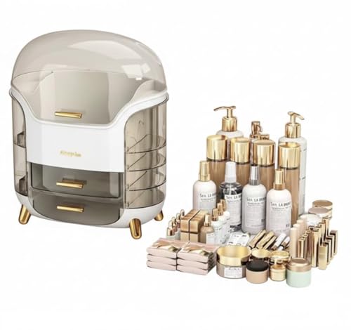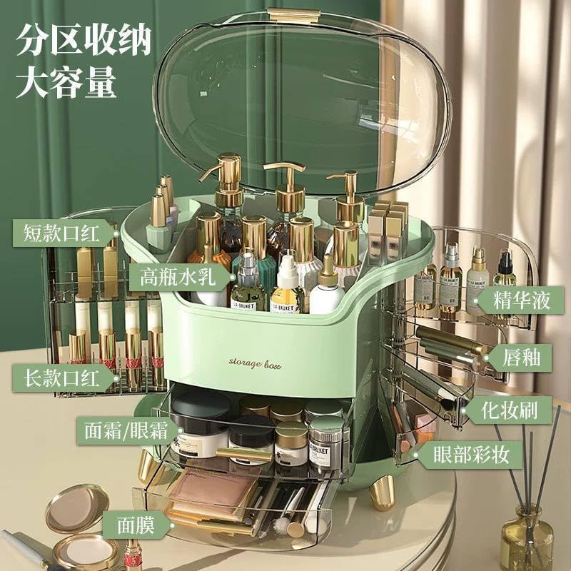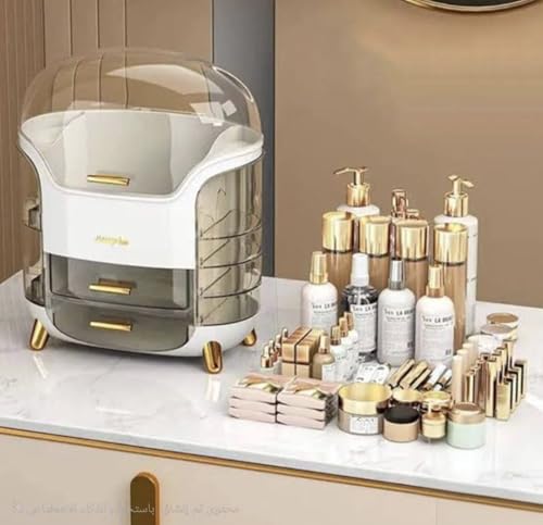 - منظم مكياج أكريليك جامبو بسعة كبيرة يضم درج عميق بغطاء قلاب و6 أدراج إضافية لتنظيم شامل.