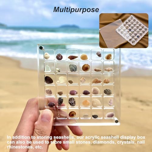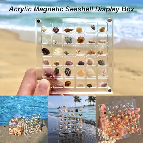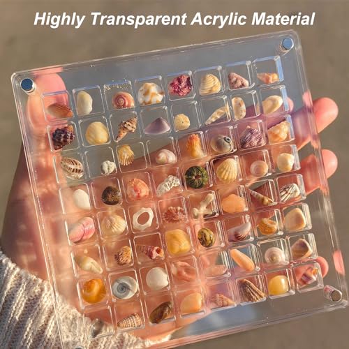 - 🐚🎁【صندوق عرض الصدف المغناطيسي من الأكريليك】- يوفر شبكة 36/64/100 من التنظيم البلاستيكي الشفاف، مادة أكريليك عالية الشفافية، يمكنك رؤية الأصداف البحرية المخزنة بوضوح. سواء كنت تلتقط صورًا مقابل المحيط أو غروب الشمس، يمكنك التقاط صور جميلة جدًا للأصداف البحرية والمناظر الطبيعية.