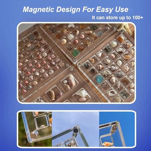 NeZih - صندوق عرض أصداف مغناطيسي من الأكريليك، منظم تخزين صغير للأشغال اليدوية للأصداف والخرز والأظافر والمجوهرات، شفاف، 100 خانة