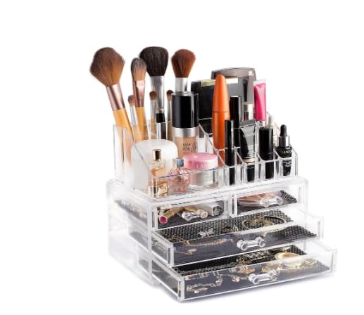 Generic - منظم مكياج اكريليك قابل للتعديل بتصميم شنطة كبيرة السعة لتخزين مستحضرات التجميل تناسب فرش المكياج والمجوهرات وأحمر الشفاه بسهولة