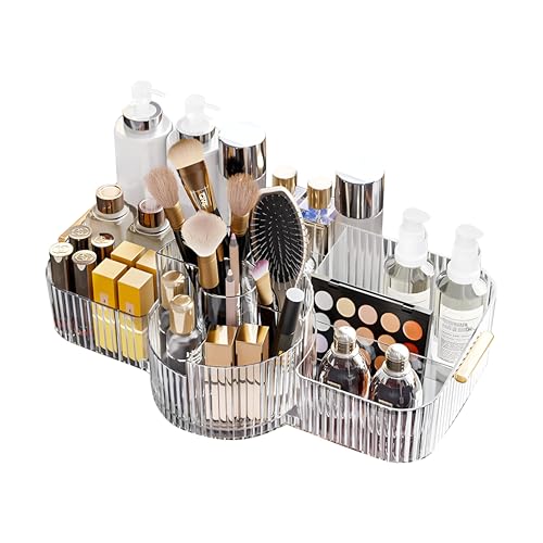 Generic - منظم مكياج اكريليك - صندوق تخزين شفاف بسعة كبيرة مع اقسام مقسمة لاحمر الشفاه والفرش ومستحضرات التجميل، مثالي لاناقة سطح المكتب العصرية.