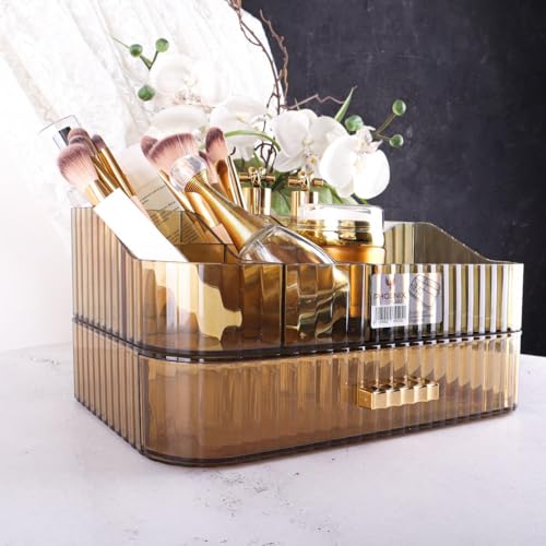 Generic - منظم مكياج أكريليك مع أدراج قابلة للتكديس، منظمات زينة حمام وتخزين، منتج مثالي لسطح المكتب ودولاب الملابس، رائع لمستحضرات التجميل والعناية بالبشرة وأحمر الشفاه (أسود شفاف، صينية+درج واحد)