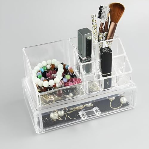 - صُنع منظم المكياج هذا من الأكريليك الشفاف عالي الجودة، وهو لا يخدم غرضًا عمليًا فحسب، بل يعزز أيضًا من الجاذبية الجمالية لحمامك أو منضدة الزينة. يسمح لك مظهره الواضح والراقي بتحديد مكان العناصر بسرعة دون الحاجة إلى البحث بين الفوضى، مما يضمن بقاء نظام جمالك مبسطًا.