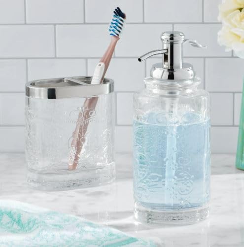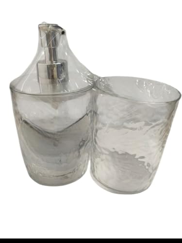 Spaceshoop - مجموعة إكسسوارات حمام عصرية من الاكريليك مكونة من قطعتين/ مجموعة إكسسوارات الحمام وموزع الصابون واللوشن وحامل فرشاة الأسنان وكوب (لون شفاف)