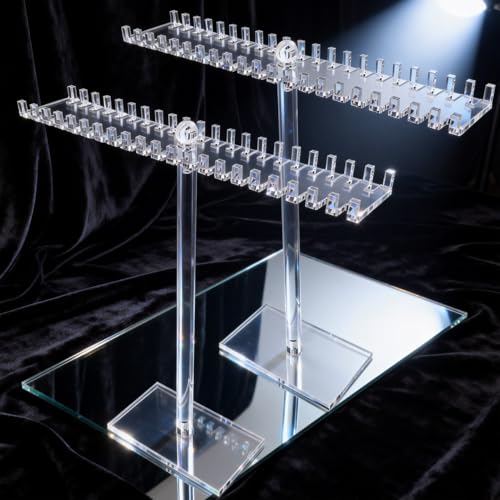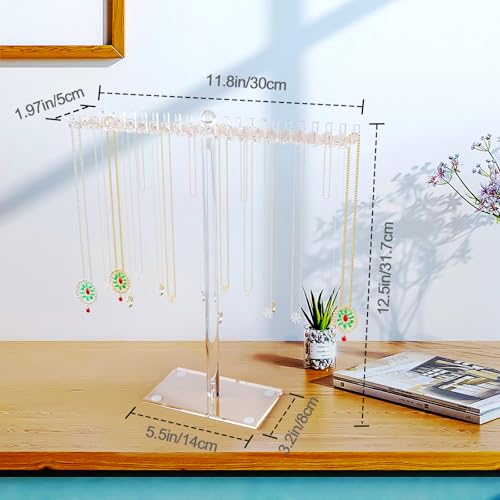 SOVQUEST - حامل مجوهرات من الاكريليك مع 44 خطاف، منظم مجوهرات ثنائي لعرض الأساور والحلقان والسلاسل والخلخال وتوك الشعر، قطعتين، طول 30 سم × ارتفاع 32 سم (ثنائي، قطعتين)