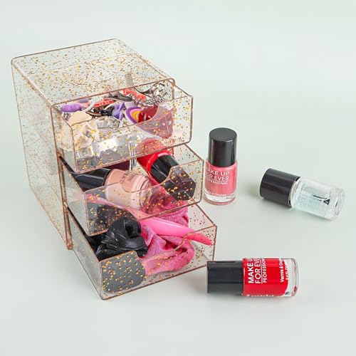 - يتميز منظم الأكريليك الشفاف الأنيق مع لمسات لامعة ذهبية بثلاثة أدراج واسعة، مما يحول الإطار المدمج مقاس 10 × 13 سم إلى حل تخزين أنيق يحافظ على الخواتم والأقراط والأشياء الصغيرة الأخرى معروضة بشكل جميل ويمكن الوصول إليها بسهولة.
