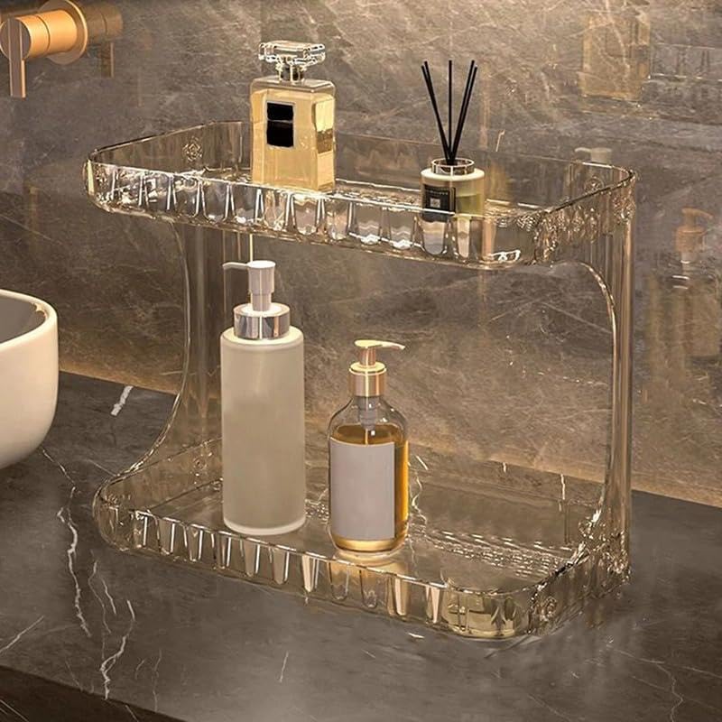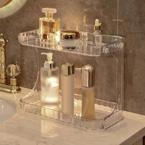Generic - منظم اكريليك - صندوق تخزين شفاف انيق من طبقتين مع مساحات تخزين متعددة للمكياج والاكسسوارات ومستلزمات الحمام، مصنوع لتنظيم عصري وانيق