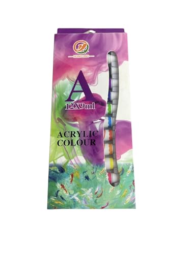 - مجموعة كاملة: 12 لون طلاء أكريليك نابض بالحياة، كل أنبوب يحتوي على 9 مل، مثالي لمختلف المشاريع الفنية
