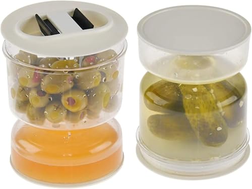 AREXOL - علبة مخللات أكريليك شفافة محكمة الغلق لحفظ الخيار والزيتون والليمون مع إمكانية التحكم في مستوى الماء والمحلول الملحي لتنظيم الطعام داخل الثلاجة والمطبخ بإحكام وراحة كاملة