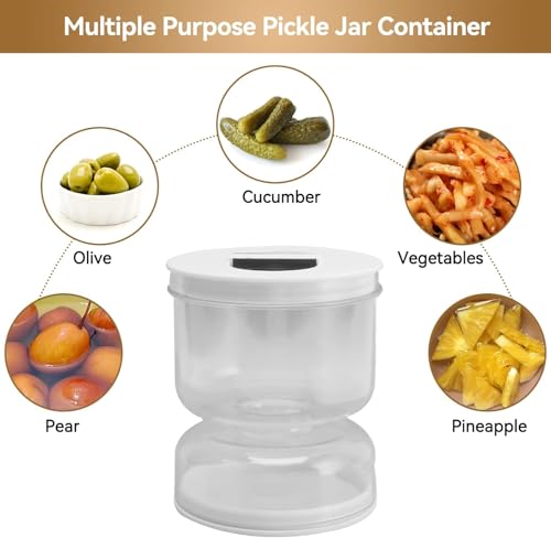 - ✅【استخدامات متعددة】تستطيع العلبة استيعاب أنواع كثيرة من المخللات مثل الخيار والزيتون والليمون بالإضافة إلى إمكانية استخدامها لحفظ أطعمة تحتاج للنقع أو التخزين في سوائل، مما يجعلها عنصرًا ضروريًا في المطبخ يقدم حلولًا مرنة للتخزين اليومي، ويمنحك تجربة مريحة في تنظيم الأطعمة دون فوضى أو روائح غير محببة. 🍯