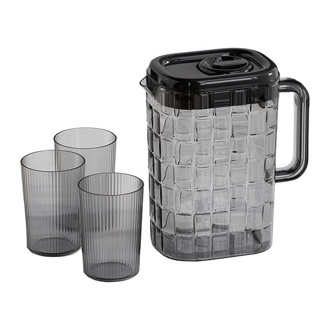 Generic - طقم ابريق اكريليك مع 3 اكواب للعصير والماء والشربات، ابريق تقديم خفيف الوزن وانيق، ادوات مائدة للمنزل والتجمعات الرمضانية والاستخدام اليومي (رمادي)