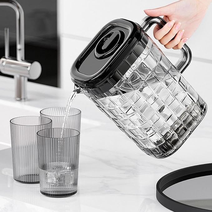 - قدمي كل مشروب بثقة وأناقة باستخدام إبريق الأكريليك هذا مع 3 أكواب متطابقة، مما يجعل العصير وخدمة المياه تبدو أنيقة ومنظمة وجذابة على طاولتك.