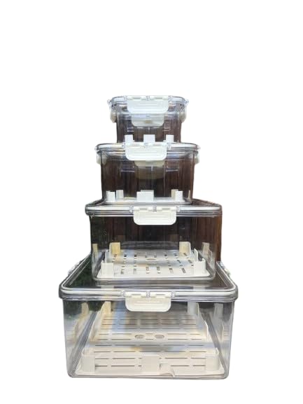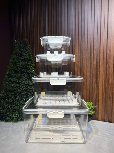 Generic - طقم علب تخزين أكريليك مستطيلة 4 قطع بمؤشر زمني ومصفاة داخلية - حاويات طعام محكمة الغلق أحجام كبيرة للفريزر وغسالة الأطباق l