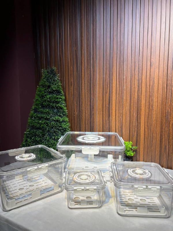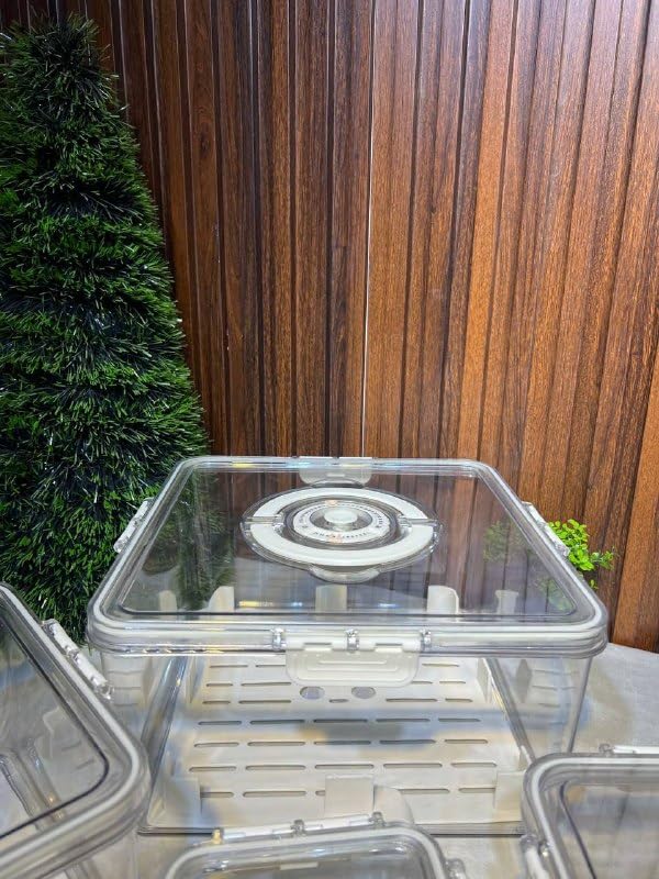 - تحتوي كل علبة على مصفاة داخلية قابلة للإزالة تعمل على فصل السوائل عن الطعام، مما يضمن بقاء الخضروات والفاكهة طازجة لفترات مضاعفة.