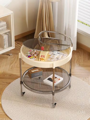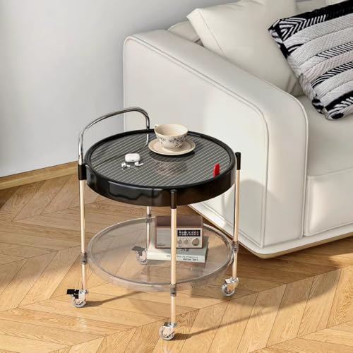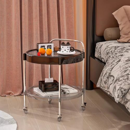 Generic - عربة تقديم وتخزين ضيافة أكريلك دائرية بعجلات، طبقتين