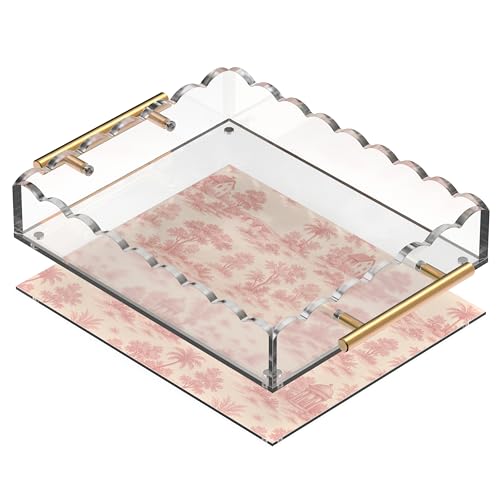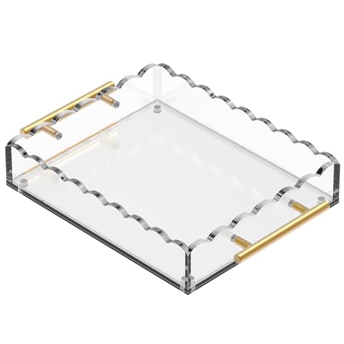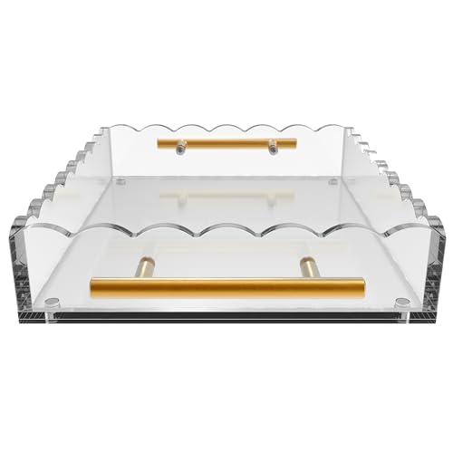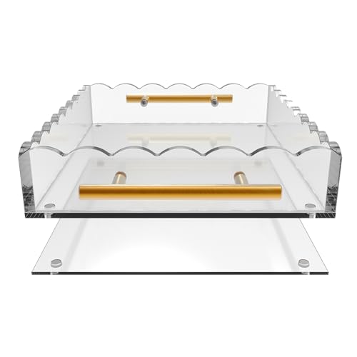 GRAHAM DESIGN - صينية اكريليك صدفية بمقابض برونزية وسجادة مغناطيسية - قابلة للتخصيص للصور والفنون والرسائل، تتضمن وسادات مضادة للانزلاق، 10 × 12، شفافة