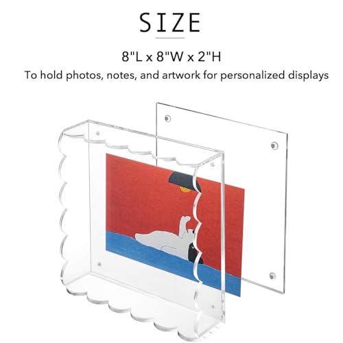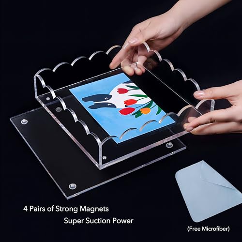 JIMEI - حامل صينية اكريليك صدفية مع قاعدة مغناطيسية 20.3 سم × 20.3 سم - عرض قابل للتعديل للصور واللوحات والرسائل، حامل أدوات التجميل للحمام والمكتب، قاعدة شفافة كريستالية مضادة للانزلاق (تتضمن شنطة تخزين)