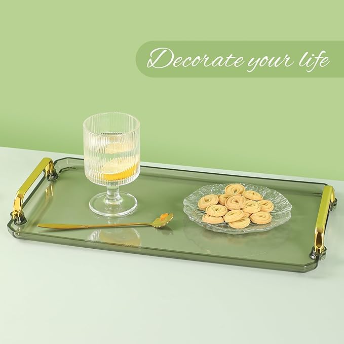 - تصميم أنيق وعصري: تتميز صينية التقديم هذه بمقابض مزدوجة قوية، مما يحافظ على أغراضك منظمة ويجعلها تبدو أكثر ترتيبًا. متعددة الأغراض: هذه الصينية المزخرفة مثالية لتخزين وعرض المجوهرات والعطور والشموع والمفاتيح وتقديم الطعام والمشروبات.
