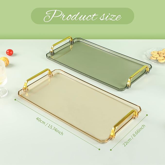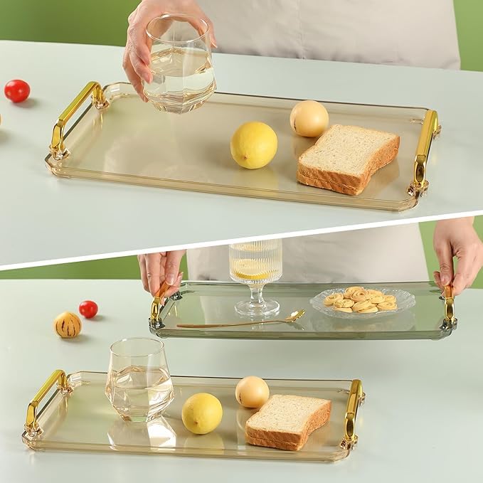 Generic - صينية تقديم اكريليك مع مقابض، صينية ديكور لسطح الطاولة، صينية تقديم مقاومة للانسكاب لطاولة القهوة وغرفة المعيشة وغرفة النوم (بني)