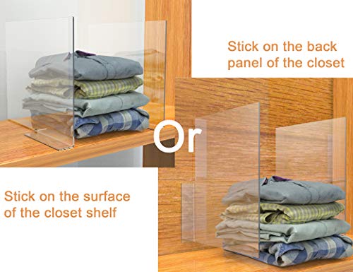 - 【مساحة تخزين إضافية】 تسمح لك فواصل الرفوف المصنوعة من الأكريليك بتقسيم نفس الرف إلى مناطق وظيفية مختلفة. يمكن أن تساعدك هذه الأرفف الشفافة على تقسيم الأرفف العريضة بسهولة لتكديس الأشياء مثل الملابس والمناشف والملاءات والمحافظ وحقائب اليد إلى كومة عالية أنيقة. قم بزيادة مساحة التخزين في الخزانة والحفاظ على رف الخزانة أو خزانة المؤن أو أي رف أنيقًا ونظيفًا. يرجى قياس الرف الخاص بك للتأكد من أن الفاصل يناسبه.