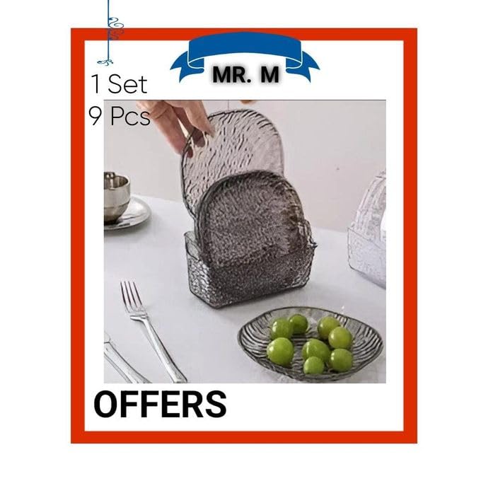 Generic - أطباق مائدة من الأكريليك للوجبات الخفيفة والحلويات مع حامل تقديم شفاف لتنظيم الضيافة والحفلات، أدوات مائدة خفيفة الوزن ومتينة وسهلة التنظيف، مجموعة من 9 قطع