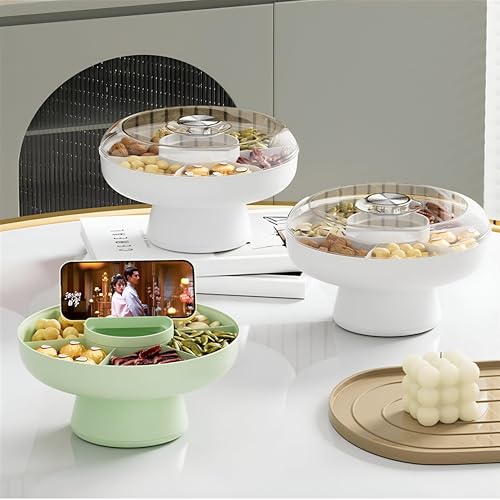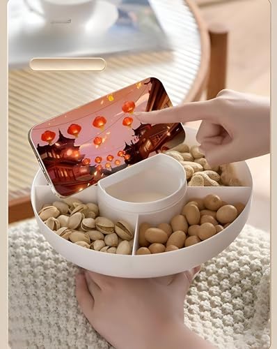 Generic - وعاء وجبات خفيفة من الاكريليك من 6 أقسام مع حامل موبايل وسهولة التخلص من النفايات للمكسرات والفواكه والحلوى