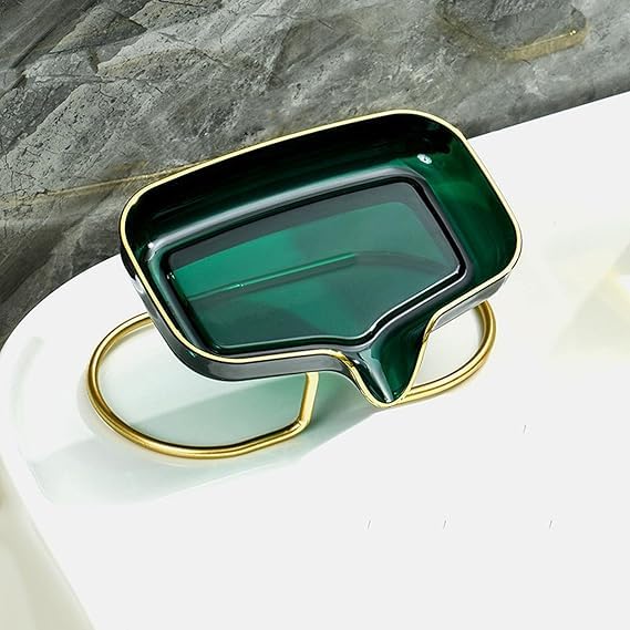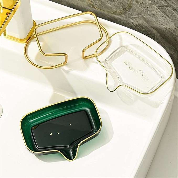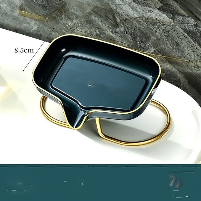 - تبقى الصابونة في المكان الذي تضعها فيه، هل سئمت من انزلاق الصابون من الصبانة؟ تحافظ هذه القاعدة المعدنية الذهبية على ثباتها، مما يضيف الأناقة بالتخلص من الانزلاق والانسكابات.
