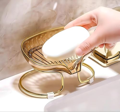 - يتميز حامل الصابون بتصميم صدف أنيق مع قاعدة معدنية ذهبية فاخرة، مما يضيف لمسة فاخرة إلى أي ديكور حمام بينما يتم تصنيعه من الأكريليك المتين للاستخدام طويل الأمد.