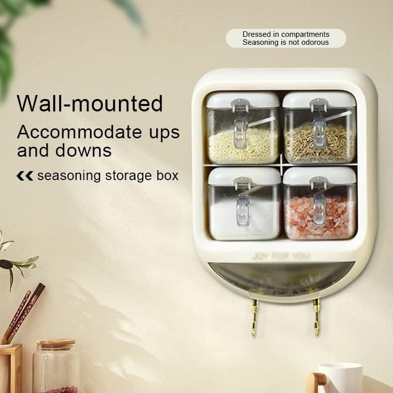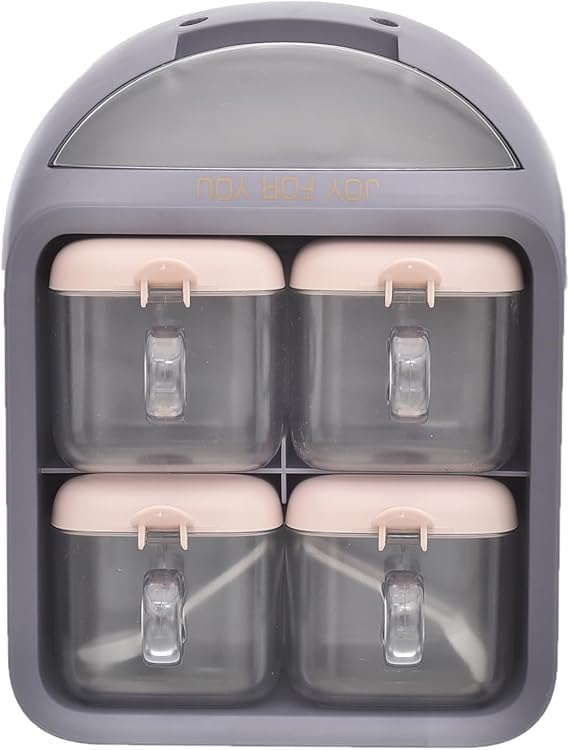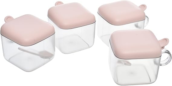 Generic - طقم علب توابل اكريليك من 4 بأغطية ومعالق صغيرة عملية للمنزل مجموعة 12 قطعة - متعددة الألوان